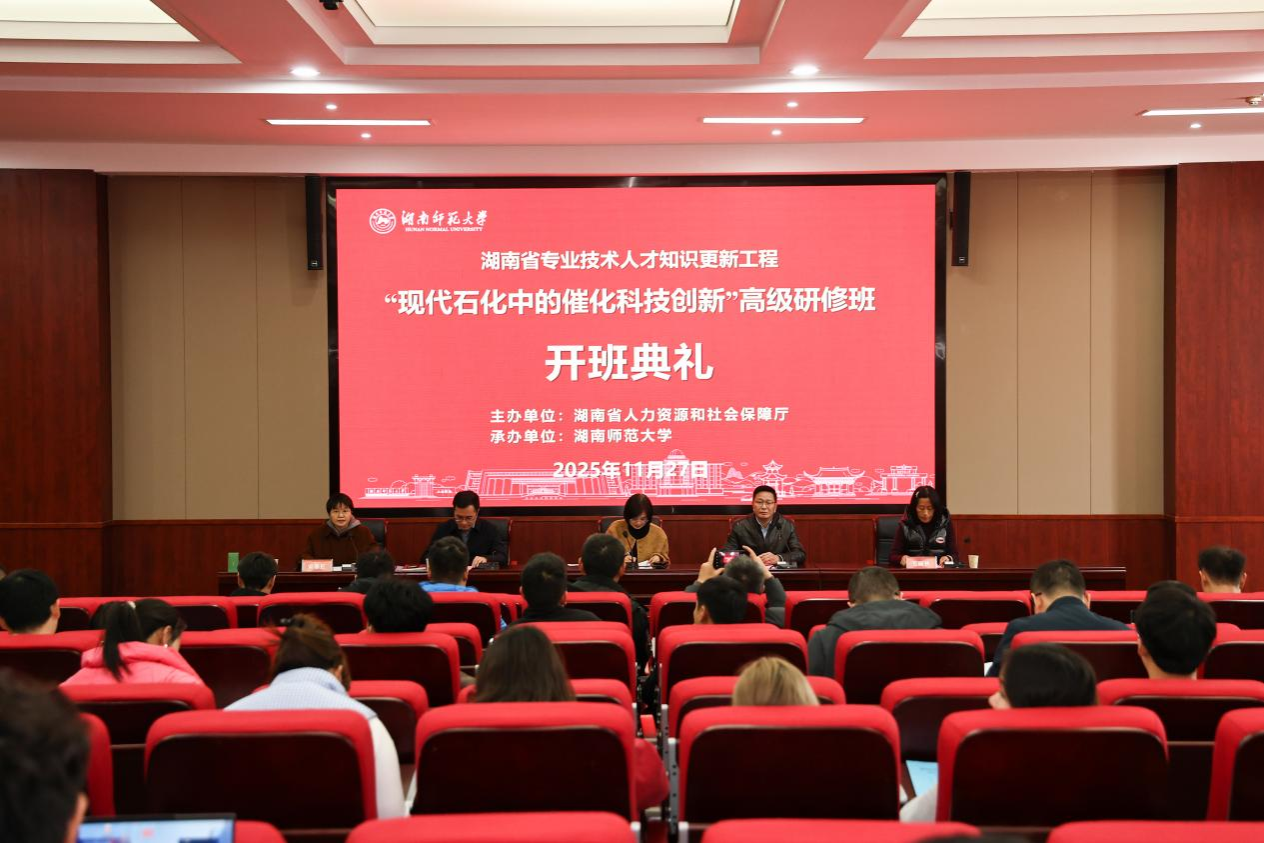 近日,由湖南省人力资源和社会保障厅主办、湖南师范大学承办和“石化新材料与资源精细利用”国家地方联合工程实验室协办的专业技术人才知识更新工程“现代石化中的催化科技创新”高级高研班,于11月27日—12月1日在湖南师范大学化学化工学院顺利举行。